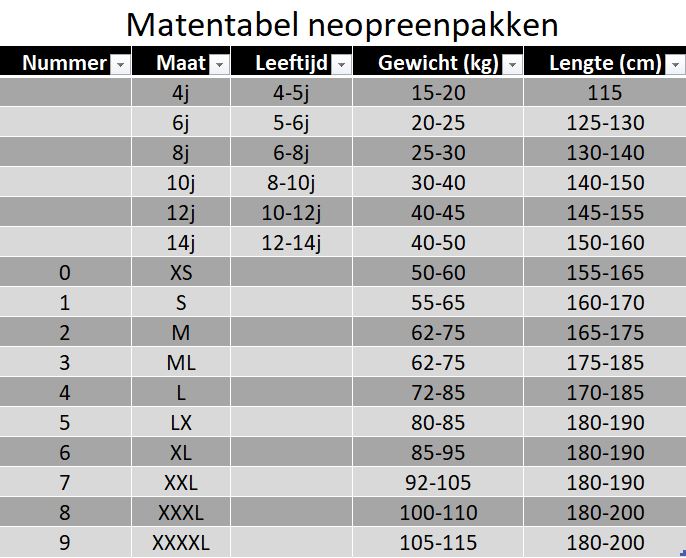 (meestal hebben deze mensen nooit te koud in onze zomercanyons dus geef hun niet standaard een te klein pak dit maakt voor hun de beleving minder aangenaam en maakt onze pakken sneller kapot)